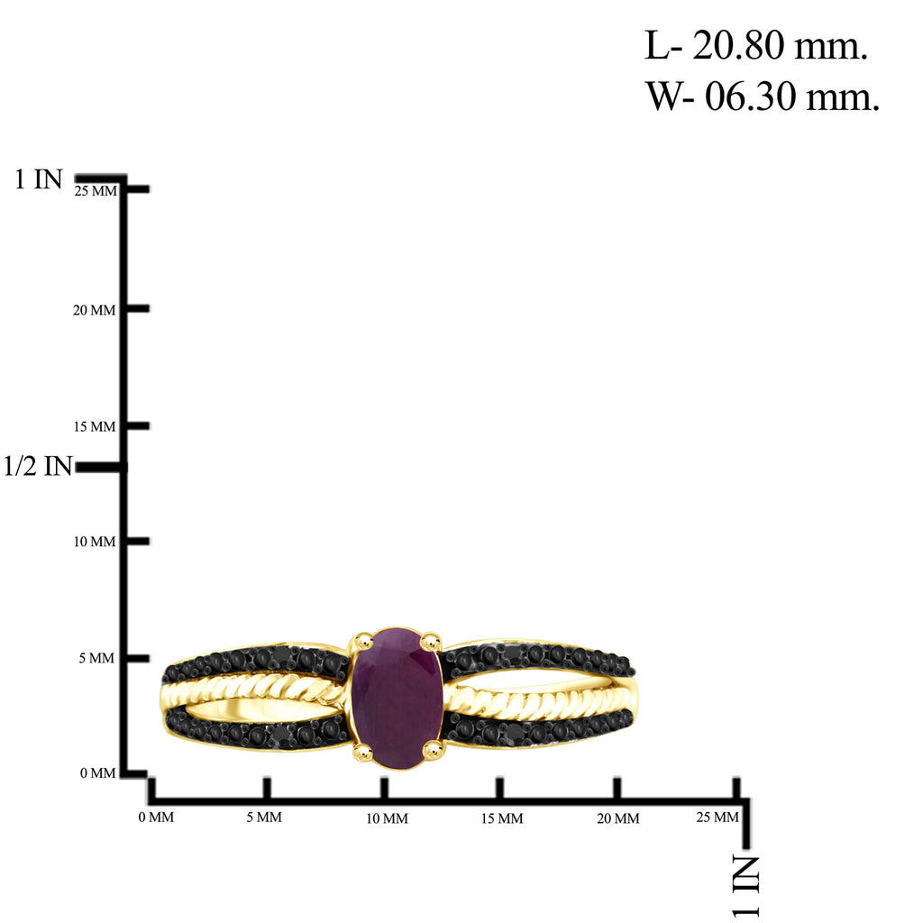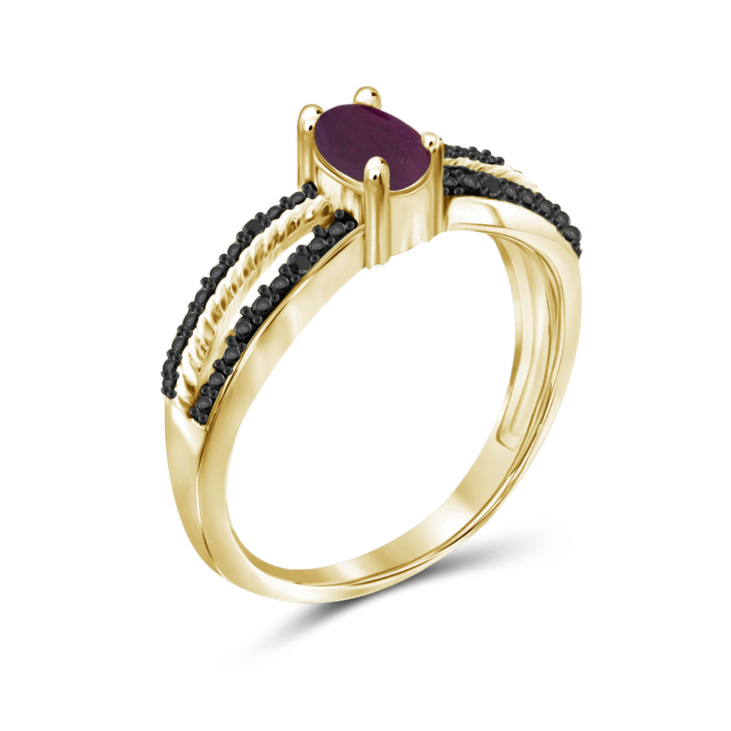 Ruby Ring Birthstone Jewelry – 0.50 Carat Ruby 14K Gold-Plated Ring Jewelry with Black Diamond Accent – Gemstone Rings with Hypoallergenic 14K Gold-Plated Band