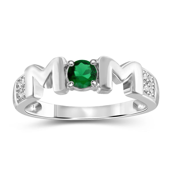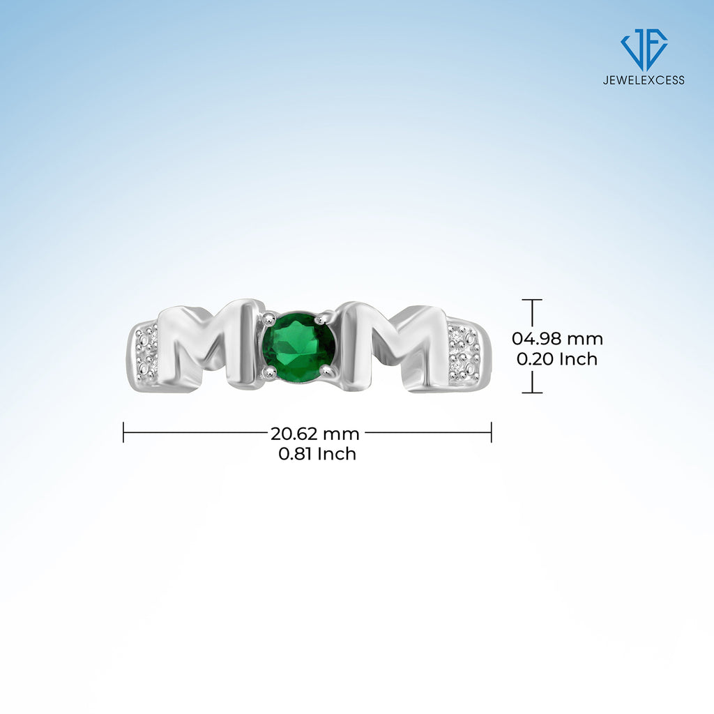 Mothers Ring Created Emerald Rings for Women – Thoughtful Mom Ring Design with Created WhiteSapphire & Birthstone – Sterling Silver Rings for Women or Sterling Silver Ring Plated Gold Ring