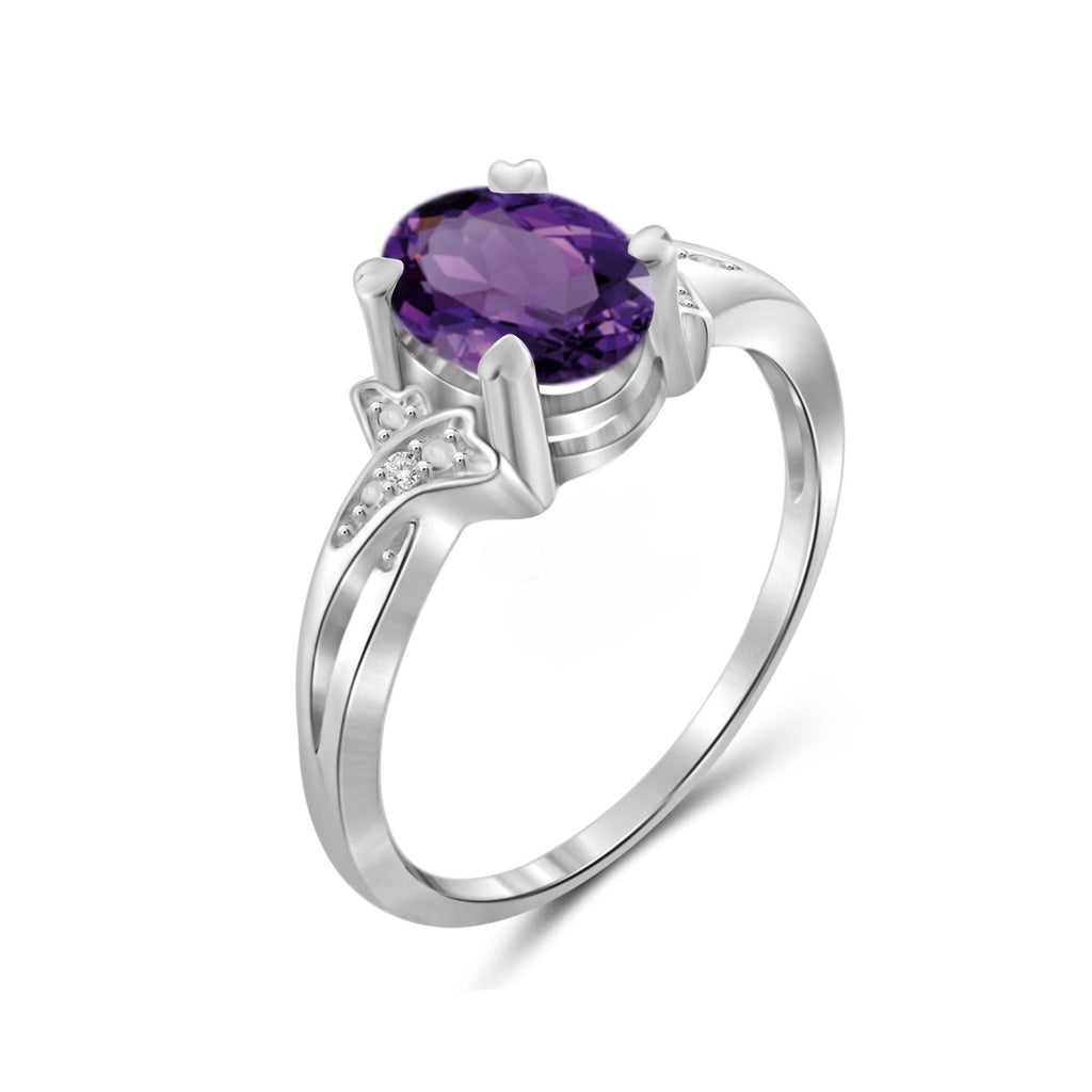 Amethyst Ring Birthstone Jewelry – 1.00 Carat Amethyst Sterling Silver Ring Jewelry with White Diamond Accent – Gemstone Rings with Hypoallergenic Sterling Silver Band