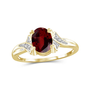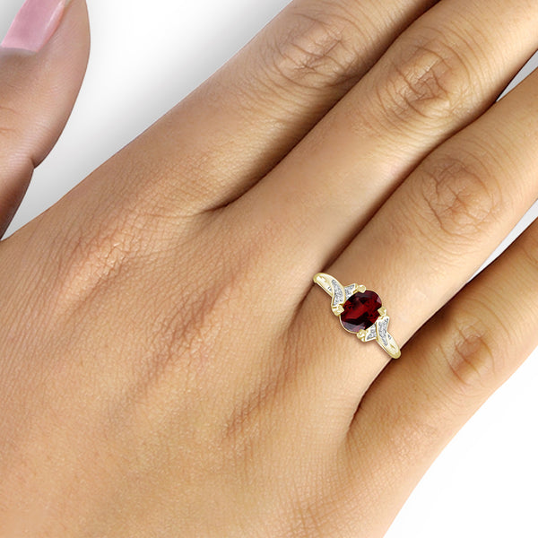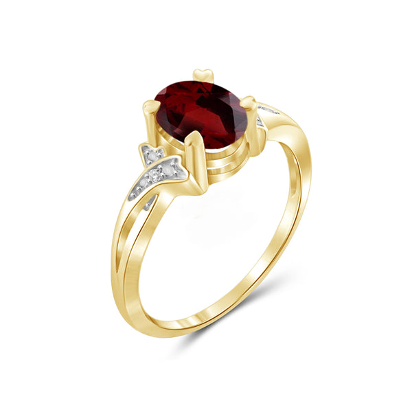 1.60 Carat Garnet Gemstone and Accent White Diamond 14K Gold-Plated Ring