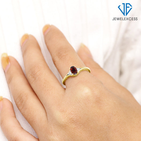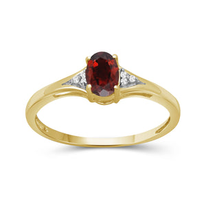 - The average garnet birthstone ring often turns out not to be genuine, with a faux garnet stone that looks dull and flat. The JewelExcess garnet Ring features a real 1/2 carat Garnet gemstone, cut into a gorgeous oval and enhanced by real White Diamond clusters on either side. With a hypoallergenic, luminous 14K Gold over Silver setting, this stunning stone ring’s vibrant, red shade compliments all skin tones.