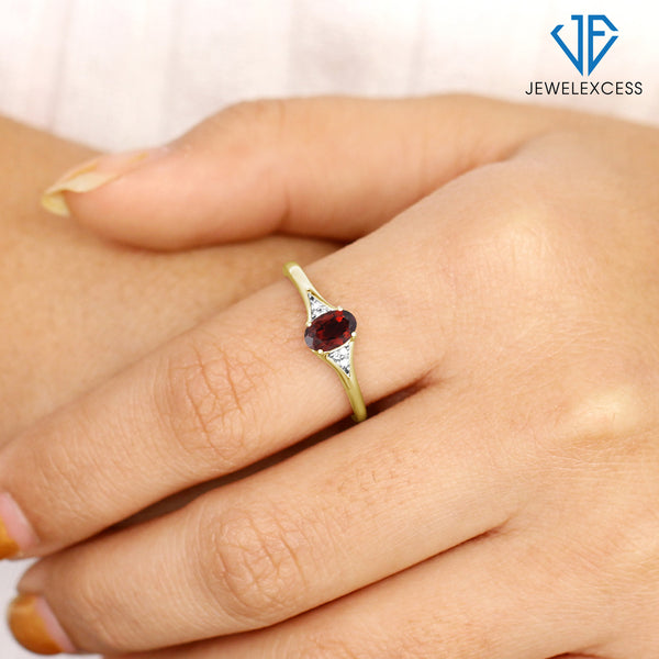 Crafted with care and expert workmanship and set in a hypoallergenic, .925 14K Gold Over Silver band, this gorgeous garnet oval ring is durably made with premium materials that set it apart from the rest.