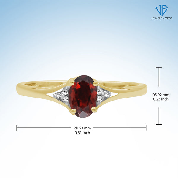 Garnet Ring January Birthstone Jewelry – 1/2 Carat Garnet 14K Gold Over Silver Ring Jewelry with White Diamond Accent – Gemstone Rings with Hypoallergenic 14K Gold Over Silver Band
