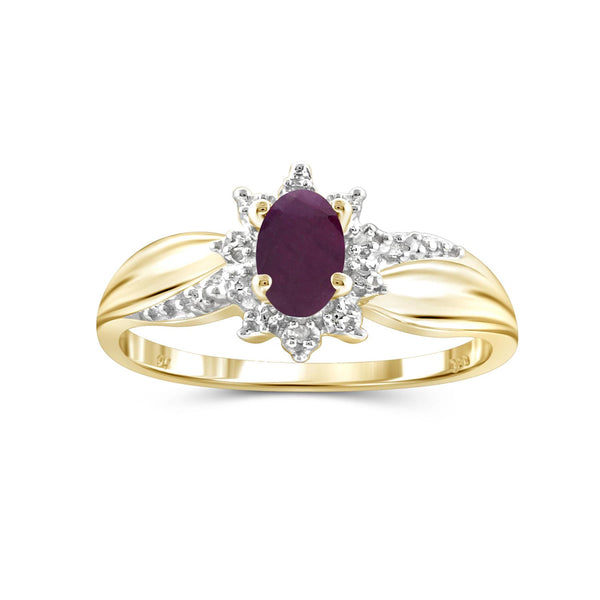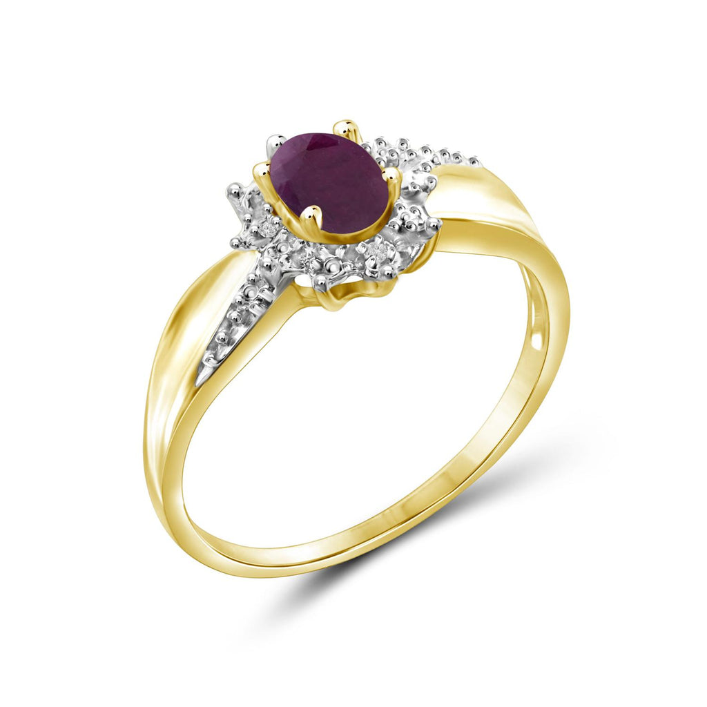 0.48 Carat T.G.W. Ruby Gemstone and Accent White Diamond 14K Gold-Plated Ring