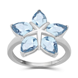 4 1/4 Carat T.G.W. Sky Blue Topaz Gemstone Sterling Silver Flower Ring